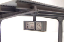 wie beim Vorbild, das Bahnsteigdach mit Bahnsteigsanzeigen in